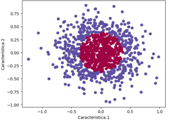 Lo primero que necesitamos hacer es generar un conjunto de datos ficticio para entrenar nuestra red neuronal. Usaremos la función make_gaussian_quantiles de la biblioteca Scikit-Learn para crear datos que se distribuyan en dos clases. Estos datos serán la base de nuestro proyecto.